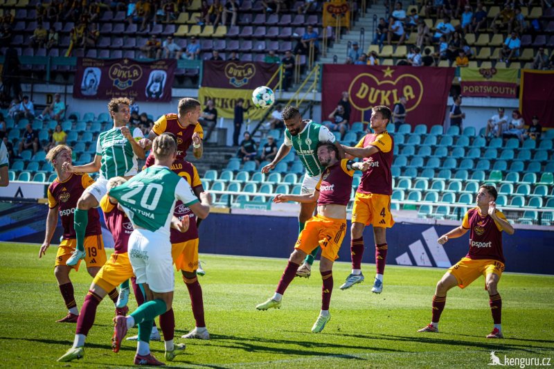 Dukle poprvé v sezoně chyběl zraněný brankář Matrevics, a tak si prvoligový debut odbyl jeho náhradník Jágrik. Derby bylo dlouho úpornou bitvou o každý metr hřiště. Až ve 26. minutě byla k vidění vydařená akce, která hned skončila gólem. Hostující Sinjavskij se odvážnou individuální akcí prokličkoval podél koncové čáry až do šestnáctky, našel nabíhajícího Aleše Čermáka a jeho střelu zblízka stačil brankář jen tečovat do vlastní sítě. Třicetiletý záložník si otevřel střelecký účet v ligové sezoně, jediný gól v minulém ročníku dal loni v listopadu také Dukle.